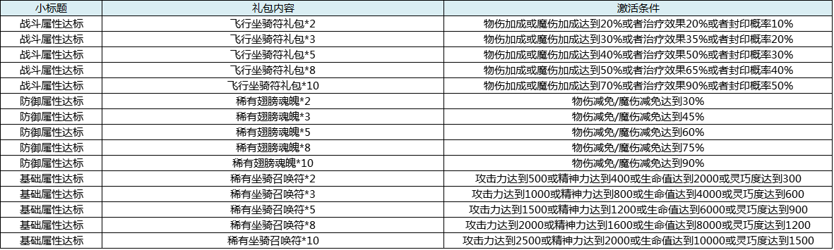 活动十一:新兵达标(开服持续一个月) 活动内容:活动时间内,水粉们属性达到相应要求即可领取丰厚奖励。